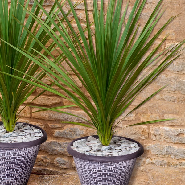 - Two stunning cordyline plants supplied with ideal 'wicker' design planters