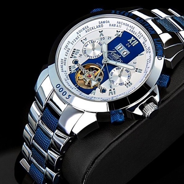 - Automatic caliber GMT-2579 (world time zones adjustable)
