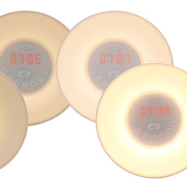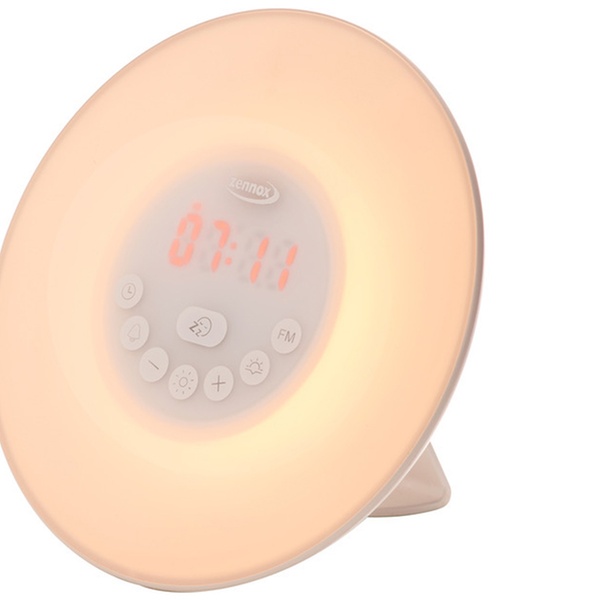 Wake up with a gradually brightening light for an easier start of the day with this alarm clock which simulates a sunrise