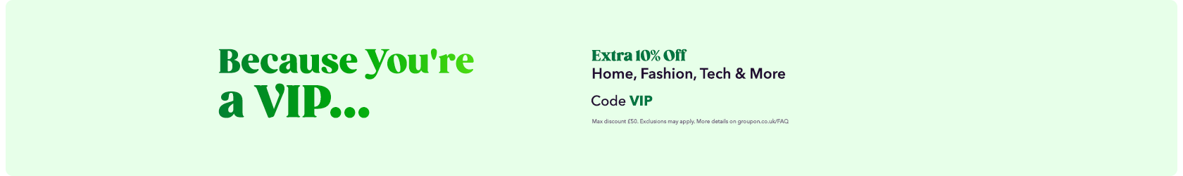 15% Off Your First Groupon! Use Code: WELCOME at checkout. Max discount £50. New customers only.