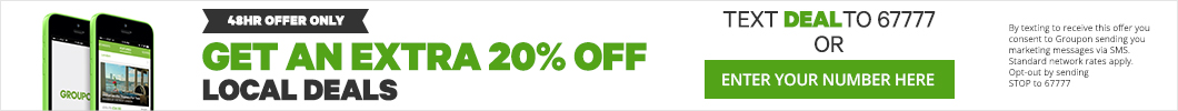 By texting or entering your number to receive this offer you consent to MyCityDeal Ltd (trading as Groupon UK) sending you marketing messages via SMS in the future containing relevant offers. You can opt-out of future marketing messages by texting STOP to 67777 at any time. For full T&C’s visit Terms of Use, Privacy Statement, and Cookie Policy. Texts will be charged at standard network rate.